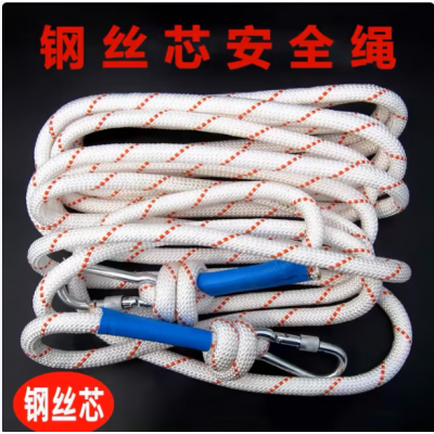 安全绳 钢丝芯应急消救援高空作业绳户外攀岩家用逃生双钩防火 10米绳子双钩(12mm钢丝芯)